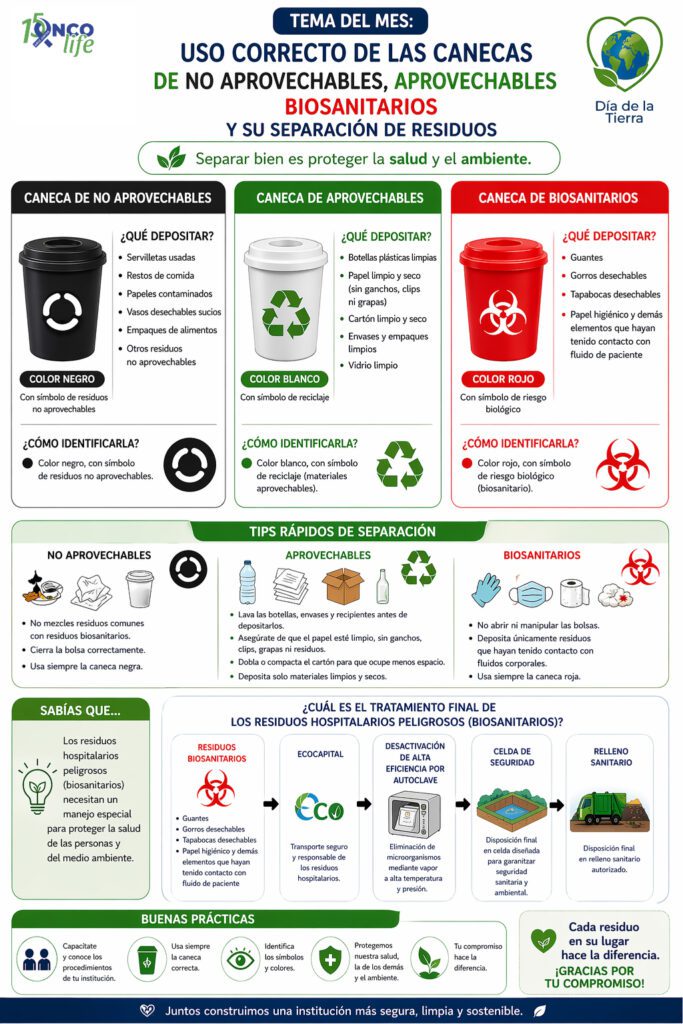 La correcta separación de residuos no solo contribuye a la protección del planeta, sino que también es clave para garantizar la seguridad de pacientes, colaboradores y la comunidad en general.
